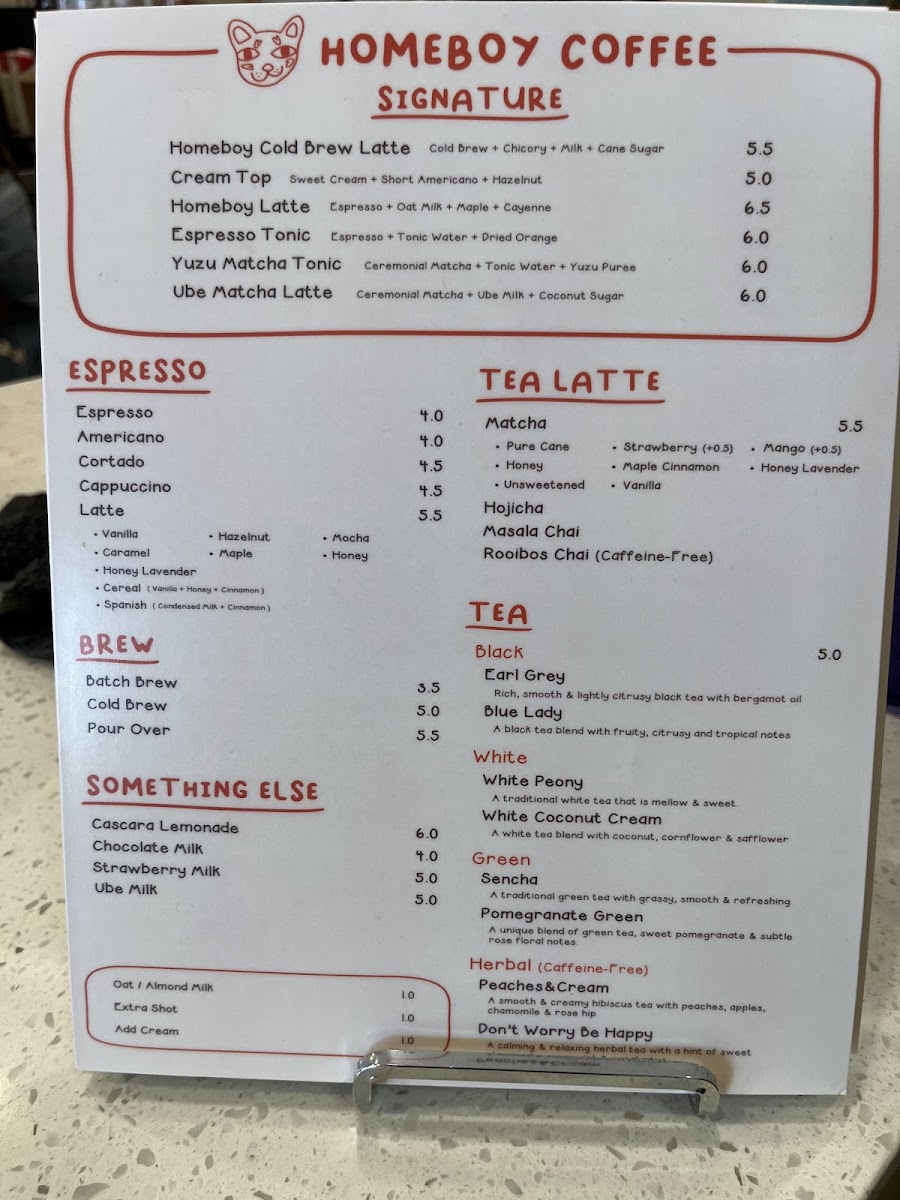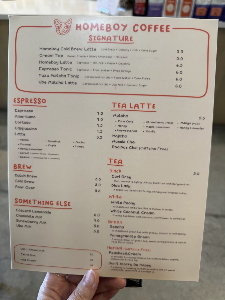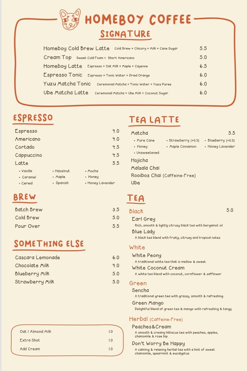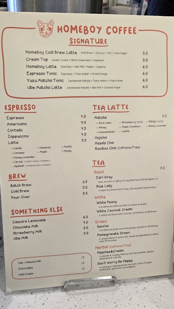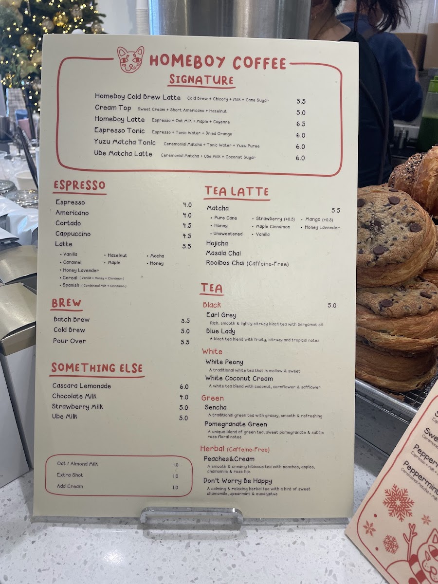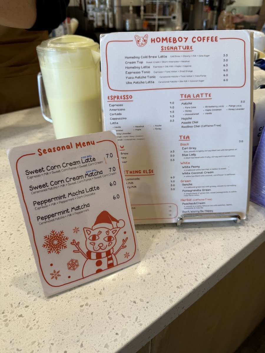 Homeboy Coffee excels at providing a variety of unique drinks that cater to all taste preferences. For those inclined towards tea, the Tea Latte selections like the Hojicha and Masala Chai captivate with their aromatic complexity. Coffee lovers shouldn't miss the Homeboy Latte or the Spanish Latte; both are highly recommended by regulars who savor their smooth, rich flavors. As Alejandro mentions, the Homeboy Latte provides a delightful honey oat sweetness, making it a must-try for visitors, even for those not typically fans of honey oat. And if you're in the mood for something seasonal, explore their offerings like the Ube Matcha Latte or Sweet Corn Cream Latte, both of which have become trendy favorites among adventurous drinkers.